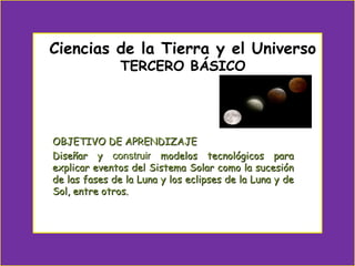 Los estudiantes diseñarán y construirán modelos tecnológicos para explicar eventos del Sistema Solar como la sucesión de las fases de la Luna, los eclipses de la Luna y del Sol, entre otros, con el objetivo de comprender estos fenómenos astronómicos.