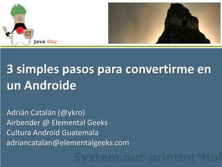 Este documento ofrece 3 pasos para convertirse en un desarrollador de Android: 1) Conoce Android y sus componentes principales como el sistema operativo, middleware y APIs. 2) Aprende a usar las actividades, vistas, intents y otros elementos de Android. 3) Actúa como un desarrollador de Android descargando las herramientas necesarias como Java JDK, Eclipse, el SDK de Android y creando un dispositivo virtual.