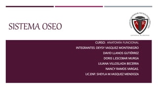 El documento proporciona información sobre el sistema óseo humano. Explica que el sistema óseo está formado por 206 huesos que componen el esqueleto y permiten el soporte, protección y movimiento del cuerpo. Se dividen el esqueleto axial y apendicular, y describen las principales funciones del sistema óseo como dar forma al cuerpo, proteger los órganos internos y permitir el movimiento junto con los músculos.