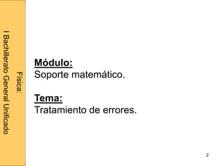 Este documento presenta información sobre el tratamiento de errores en mediciones físicas. Explica que nunca se puede medir el valor verdadero de una cantidad, solo una aproximación, y que cuantas más observaciones haya con resultados similares, más cercanos estarán los resultados al valor real. También distingue entre precisión, la capacidad de un instrumento para dar resultados similares, y exactitud, la cercanía de los resultados al valor verdadero, y describe los orígenes y tipos de errores en las mediciones.