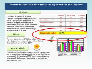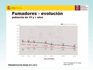 El documento aborda la adicción al tabaco y los efectos nocivos en la salud, como enfermedades respiratorias y cardiovasculares. Se enfatiza la dificultad de dejar de fumar, destacando que el 97% de los fumadores fracasa sin ayuda. Se presentan beneficios significativos de dejar de fumar en términos de salud y supervivencia a lo largo del tiempo.
