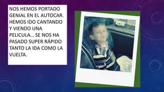 El documento describe una excursión escolar a una granja. Los niños se divirtieron cantando en el autobús de ida y vuelta. Al llegar, los dividieron en dos grupos y realizaron varias actividades como montar a caballo, alimentar gallinas, recitar poemas sobre animales de granja y ver cerdos, ovejas y terneros. También comieron macarrones con tomate, hamburguesa y yogur y aprendieron sobre las herramientas del huerto y el taller del cesped.