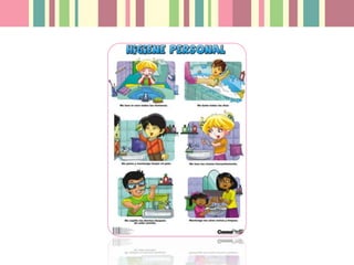 El documento presenta un proyecto pedagógico para estudiantes de primer grado que busca mejorar su higiene personal. El proyecto utiliza aplicaciones digitales como herramientas para desarrollar rutinas de cuidado personal a través de actividades lúdicas. Se identificó que los estudiantes descuidaban su higiene y se definieron objetivos para sensibilizarlos sobre su importancia mediante estrategias aplicadas en la escuela.
