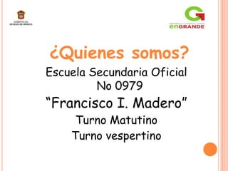 El documento presenta un resumen de las actividades realizadas por la Escuela Secundaria Oficial No 0979 "Francisco I. Madero" para abordar el problema del bullying en la escuela. Se llevaron a cabo talleres, conferencias con especialistas, actividades deportivas y de promoción de la cultura de paz para prevenir la violencia. También se instalaron cámaras de seguridad para proteger a los estudiantes y se comprometieron a continuar implementando estrategias efectivas contra el bullying.