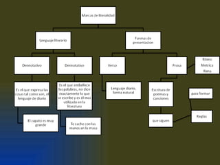 El documento presenta información sobre literatura, incluyendo la intención comunicativa, la función poética, la competencia lingüística y figuras retóricas, la presentación del discurso y diferentes épocas literarias como la antigua, moderna y contemporánea. Define conceptos como el modernismo y el vanguardismo en la literatura del siglo XX.