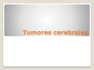 Este documento describe los tumores cerebrales, incluyendo que los gliomas son los más frecuentes, que las metástasis son más comunes que los tumores primarios, y que los astrocitomas y meningiomas son los tumores primarios más comunes en adultos. También resume los síntomas, diagnóstico, tratamiento quirúrgico, de radioterapia y quimioterapia de los tumores cerebrales.