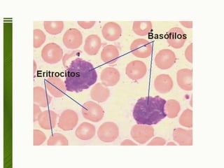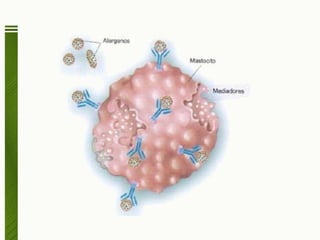 Los mastocitos y basófilos son células inmunes que contienen gránulos con mediadores inflamatorios como la histamina. Juegan un papel importante en las reacciones alérgicas e inflamatorias al expresar receptores FcεRI de alta afinidad para unir IgE. La unión del antígeno a la IgE en estos receptores induce la degranulación de las células y la liberación de mediadores que causan síntomas como los de la anafilaxia.