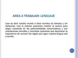 Este documento presenta una estrategia para mejorar la comprensión lectora en estudiantes de quinto grado utilizando las Tecnologías de la Información y la Comunicación (TIC). La estrategia incluye objetivos como enseñar el uso de herramientas digitales como Word, Excel y PowerPoint, destacar la importancia del lenguaje y adquirir vocabulario a través de lecturas apoyadas en TIC. Se describen actividades como observar videos, desarrollar talleres en informática y elaborar resúmenes y fichas digital