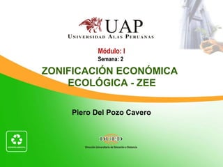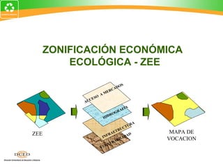 El documento presenta una introducción a la Zonificación Económica Ecológica (ZEE). Explica que la ZEE es una herramienta para el ordenamiento territorial que permite identificar zonas con usos sostenibles basados en sus potencialidades y limitaciones. Su objetivo es facilitar políticas, planes y proyectos de desarrollo sostenible. También describe la importancia de la ZEE para orientar la inversión, tomar decisiones sobre el uso de recursos naturales, y promover el desarrollo económico y social en armonía con el amb