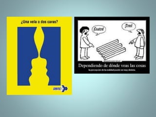 Este documento define la percepción y describe sus características principales. Explica que la percepción implica un proceso externo e interno y es subjetiva. Además, presenta las teorías principales de la percepción, incluyendo la teoría empirista, la teoría innatista y la teoría ecológica. Finalmente, aborda conceptos como la percepción visual, la predisposición perceptiva y la constancia perceptiva.