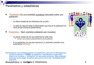 Este documento presenta un resumen breve sobre estadísticos. Explica que los estadísticos miden parámetros como la posición, centralización, dispersión y forma de los datos. Entre los estadísticos de posición se encuentran los percentiles, cuartiles y deciles. Los estadísticos de centralización incluyen la media, mediana y moda. Finalmente, las medidas de dispersión como la desviación estándar y el rango intercuartílico indican qué tan concentrados o dispersos están los datos.
