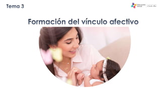 El documento destaca la importancia del vínculo afectivo entre niños y adultos para un desarrollo saludable. Las neurociencias han demostrado que el cerebro se estructura a partir de relaciones afectivas profundas que sirven de base emocional. El vínculo promueve el desarrollo cerebral, la regulación emocional y la construcción de confianza.