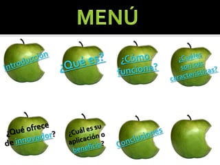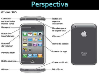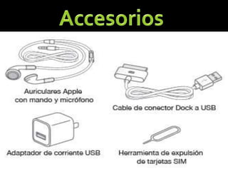 El documento describe las características y funcionalidades del iPhone. Menciona que el iPhone es un teléfono inteligente diseñado por Apple con funciones multimedia e Internet. Tiene una pantalla táctil de 3.5 pulgadas y se accede a aplicaciones y se ingresa texto a través de un teclado en pantalla. El iPhone ofrece ventajas como fácil manipulación a través de su pantalla táctil, gran variedad de aplicaciones y conectividad Wi-Fi.