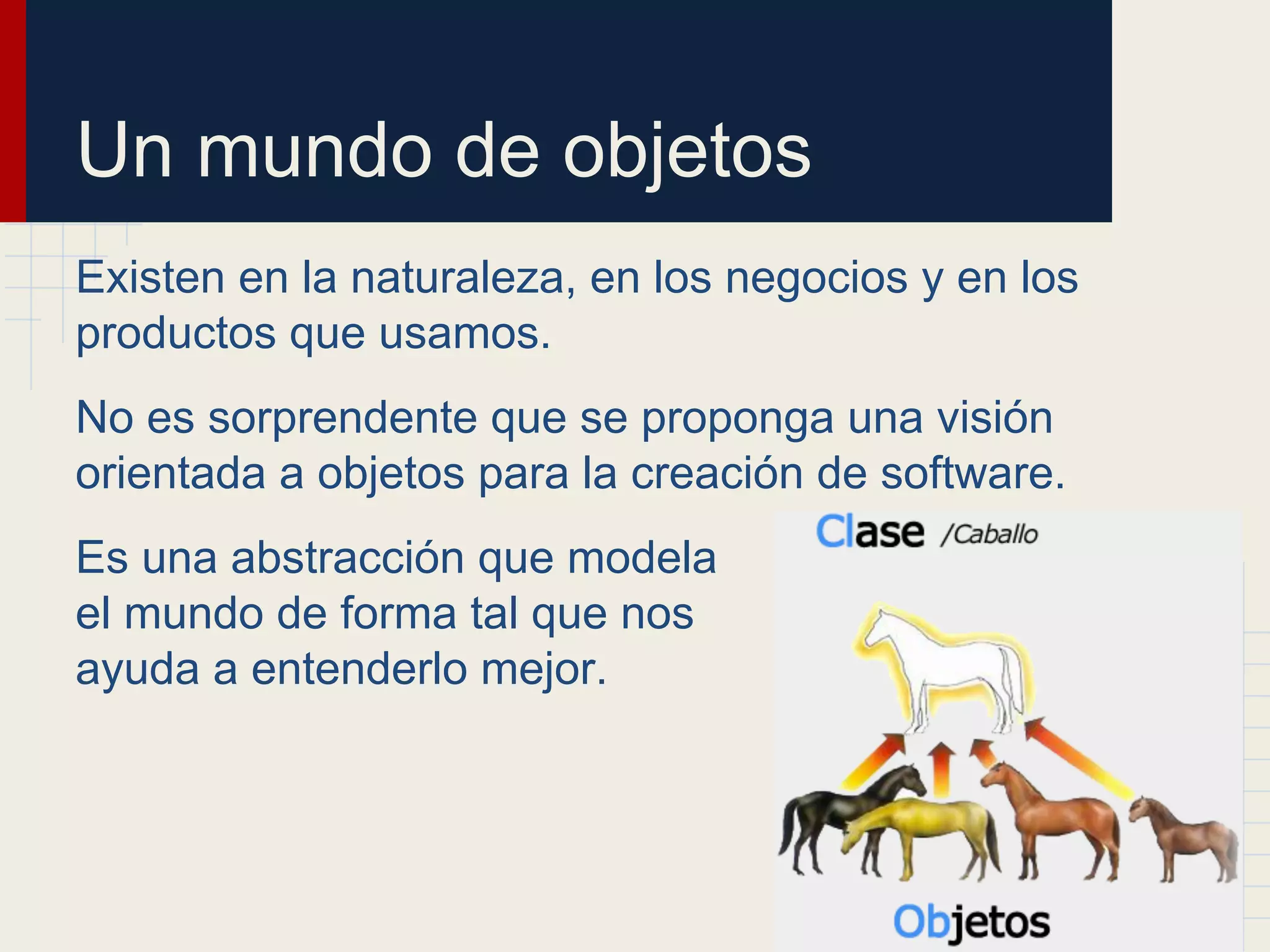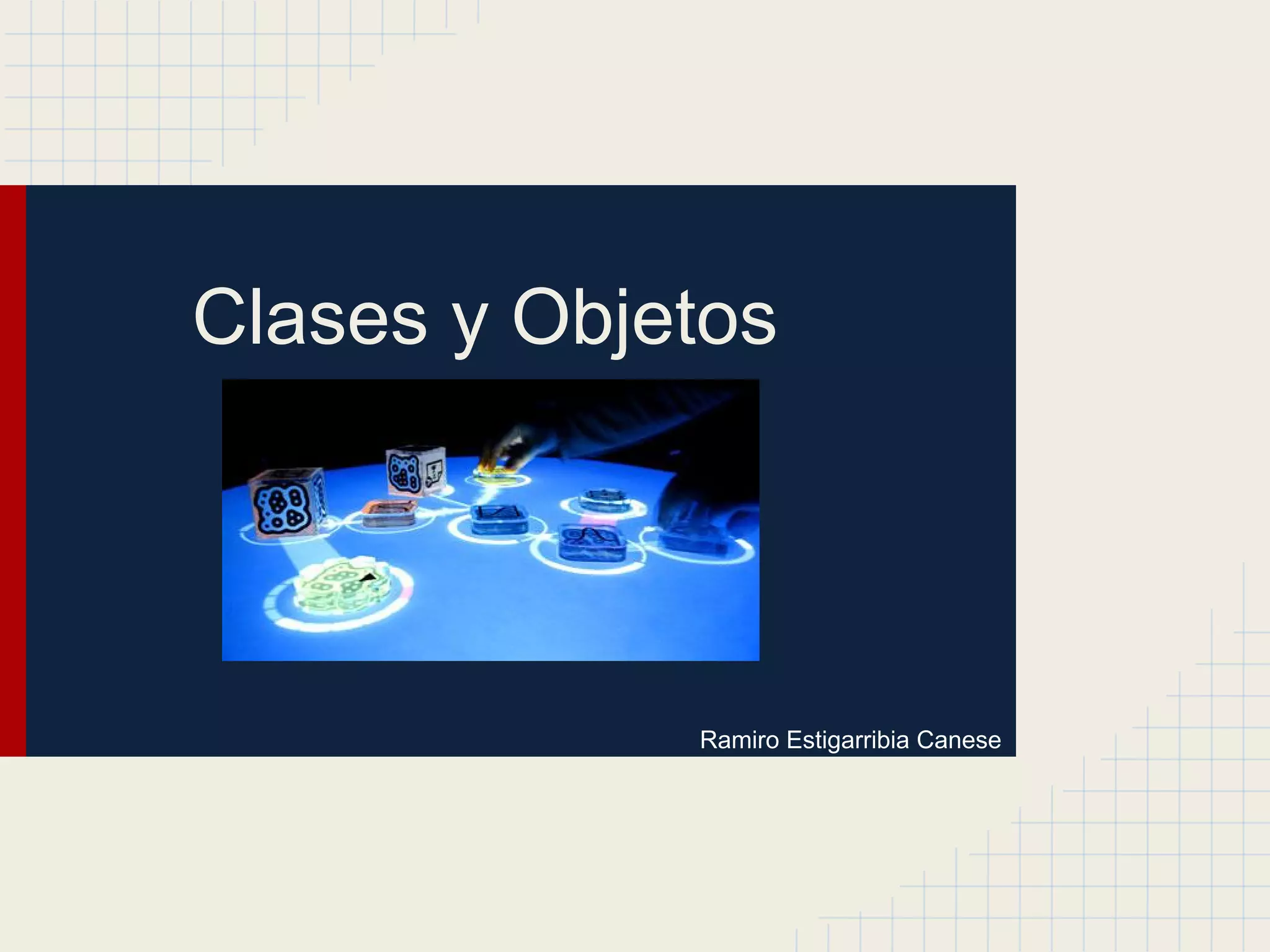 El documento explica los conceptos básicos de clases y objetos en programación orientada a objetos. Introduce las clases como plantillas para crear objetos, y los objetos como instancias concretas de una clase. Explica que las clases contienen atributos y métodos, y que los objetos heredan estos atributos y métodos de sus clases respectivas. Finalmente, presenta ejemplos simples de clases, objetos, atributos y métodos para ilustrar estos conceptos.