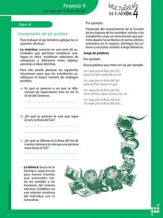 Este documento describe los conceptos y elementos clave de un proyecto interdisciplinario. Explica que un proyecto interdisciplinario integra objetivos, contenidos y habilidades de varias áreas de manera simultánea para lograr un aprendizaje significativo. Además, describe los alcances de un proyecto interdisciplinario, el enfoque por destrezas, los ejes transversales, y el rol del educador en guiar el proceso de aprendizaje.