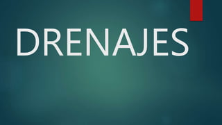 Este documento describe diferentes tipos de drenajes y sondas utilizados en medicina. Explica que los drenajes sirven para eliminar líquidos del cuerpo y pueden ser pasivos o activos. También describe sondas como la sonda Foley, sonda Nelaton y sonda Levin, indicando sus usos y características.