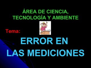 Este documento trata sobre los errores en las mediciones. Explica que es imposible medir con exactitud y que siempre habrá una diferencia entre el valor medido y el valor verdadero. Describe los diferentes tipos de errores como sistemáticos, aleatorios y groseros, y sus posibles causas. También provee consejos para mejorar la precisión de las mediciones.