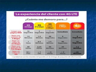 El 4G es la cuarta generación de tecnologías móviles que ofrece velocidades de hasta 1 Gbit/s y permite el acceso a internet móvil de alta velocidad a través de dispositivos como teléfonos inteligentes y módems. Proporciona servicios en cualquier lugar y momento con bajos costes.