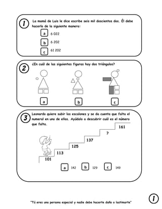 Este documento contiene una prueba de matemáticas para estudiantes de cuarto grado de primaria. Incluye varios problemas matemáticos con opciones múltiples de respuesta para que los estudiantes elijan la respuesta correcta. Al final, felicita a los estudiantes por completar la prueba y proporciona enlaces a otros recursos educativos en línea.