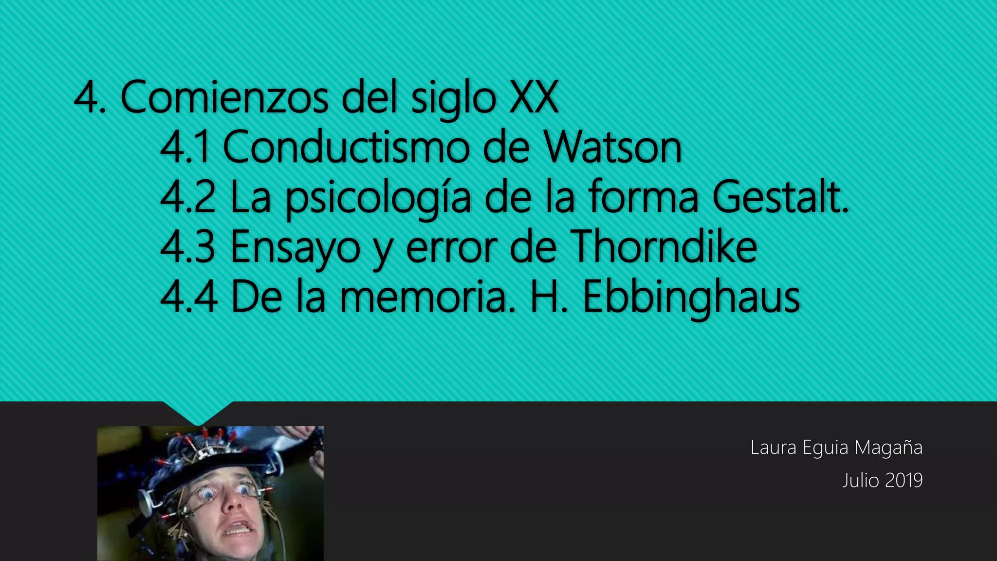 Este documento resume los principales desarrollos en psicología en los comienzos del siglo XX, incluyendo el conductismo de John Watson, la psicología de la forma Gestalt, la teoría del aprendizaje por ensayo y error de Thorndike, y los estudios pioneros sobre la memoria de Hermann Ebbinghaus.