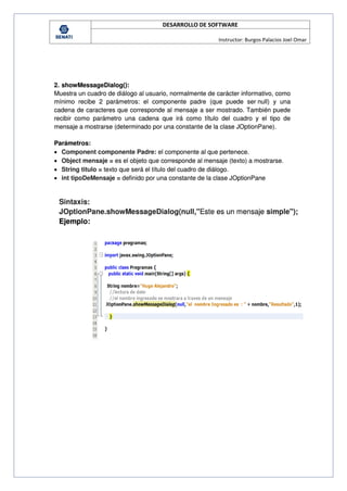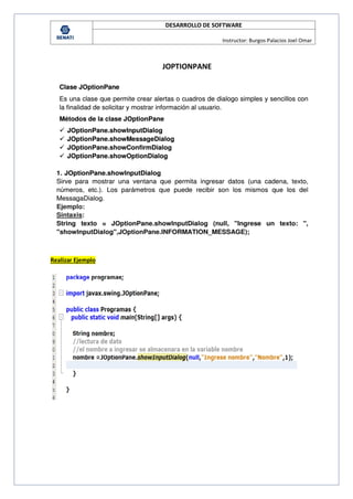 Este documento presenta un curso de desarrollo de software dictado por el instructor Joel Omar Burgos Palacios. Se repite varias veces el título del curso y el nombre del instructor.