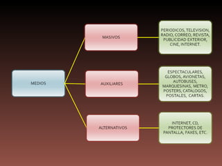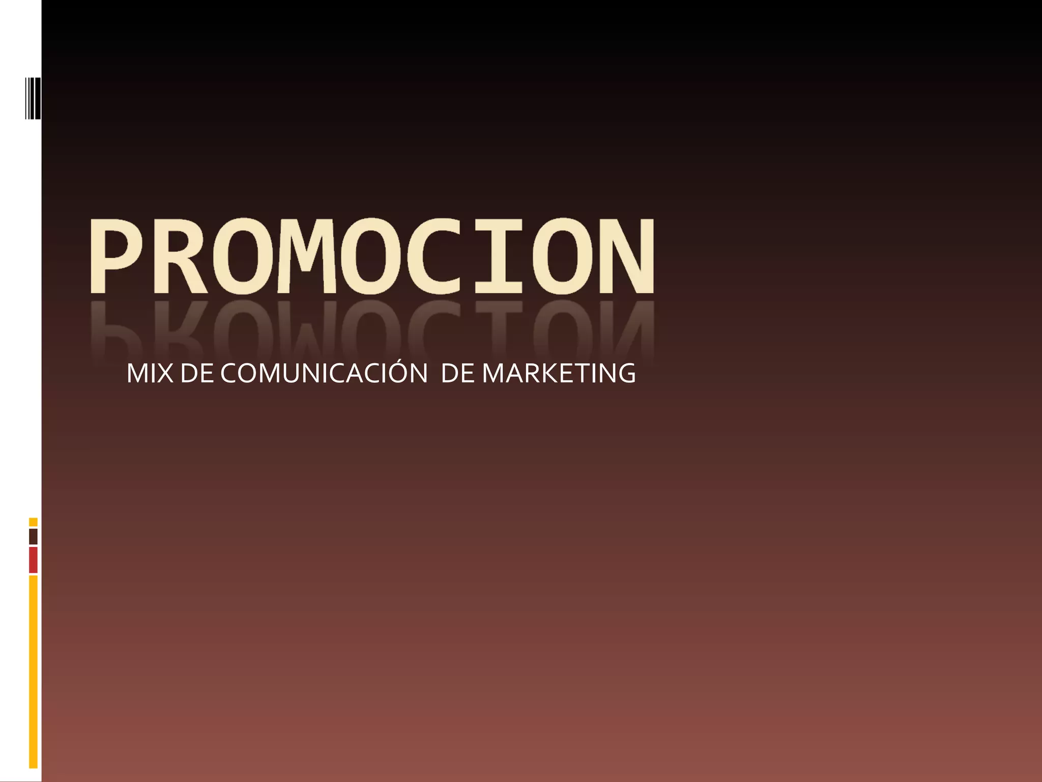 El documento resume los diferentes elementos de la comunicación de marketing para la promoción de productos, incluyendo la publicidad, los tipos de medios de comunicación masiva y complementarios, las técnicas de promoción de ventas como ofertas y ventas personales, las relaciones públicas y el marketing directo. También describe elementos clave del proceso de comunicación y las fases de desarrollo de una comunicación efectiva y de la disposición a la compra del consumidor.