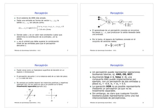 ejemplos, se hace incrementalmente, en cada ejemplo. En pueden representar funciones lineales.