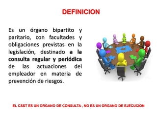 El documento describe las funciones y procedimientos del Sub Comité de Seguridad y Salud en el Trabajo. El Sub Comité es un órgano de consulta bipartito que asesora al empleador en materia de prevención de riesgos. Sus funciones incluyen promover la salud y seguridad laboral, vigilar el cumplimiento de la normativa de SST y apoyar el bienestar de los trabajadores. El documento establece los requisitos para la conformación, elección de miembros, reuniones y responsabilidades del Sub Comité.