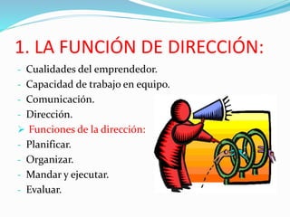 Este documento resume diferentes conceptos relacionados con la dirección y el liderazgo. Explica las funciones de la dirección como planificar, organizar, mandar y evaluar. También describe dos tipos de empleados, tipo X e Y, y tres estilos de liderazgo: autocrático, democrático y laissez-faire. Por último, resume brevemente algunas teorías sobre el liderazgo como la teoría de los rasgos de la personalidad y la teoría situacional del liderazgo.