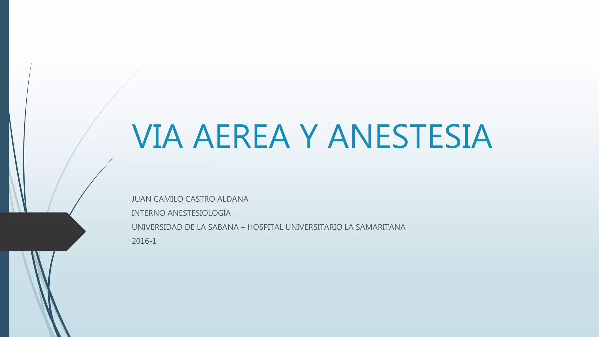 Este documento describe la anatomía de la vía aérea, incluyendo la nariz, cavidad oral, faringe y laringe. Explica las estructuras que componen cada parte de la vía aérea, como los cartílagos, músculos y vasos sanguíneos. También detalla la circulación, inervación y diferencias anatómicas entre adultos y niños en la vía aérea.