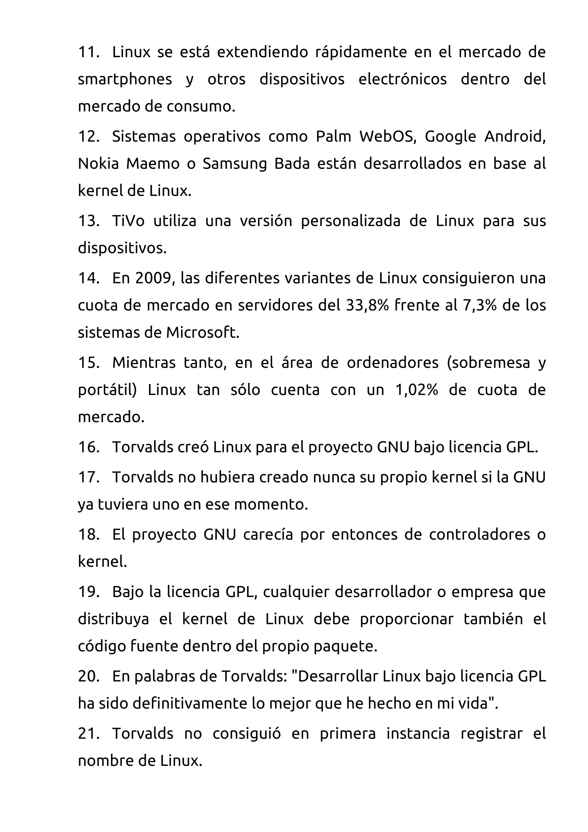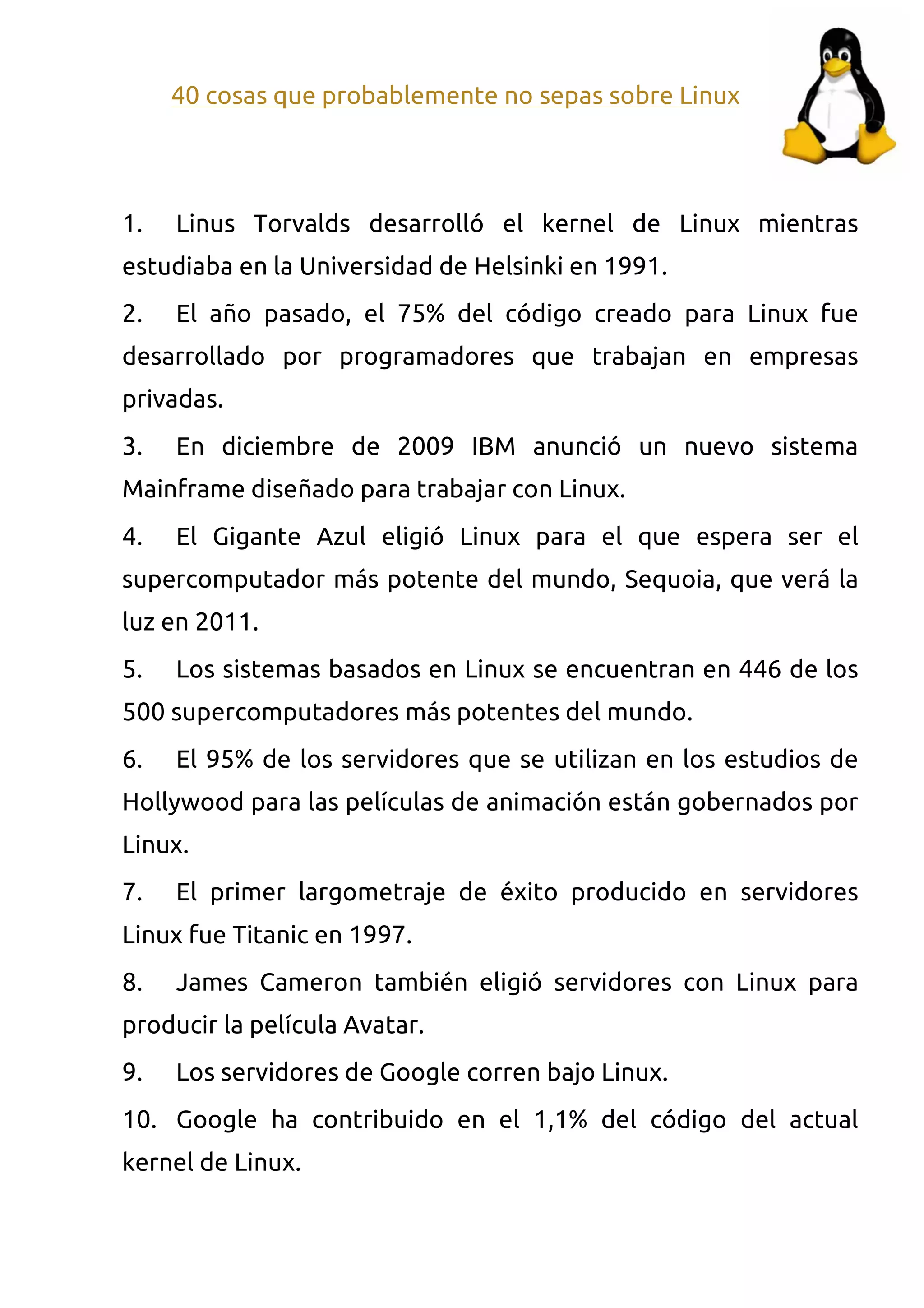 Linus Torvalds desarrolló el kernel de Linux en 1991 mientras estudiaba en la Universidad de Helsinki. Linux se ha convertido en el sistema operativo dominante en servidores, supercomputadoras y dispositivos móviles, aunque tiene una cuota de mercado menor en ordenadores de escritorio. Linux es software libre y de código abierto desarrollado por una gran comunidad de programadores de todo el mundo.