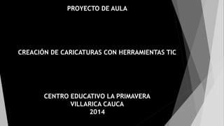 Este documento describe un proyecto de aula para enseñar a estudiantes de sexto grado a crear caricaturas usando herramientas TIC. El proyecto se enfocará en áreas como ciencias naturales, ciencias sociales e inglés. Los objetivos son fomentar el uso de herramientas tecnológicas para el aprendizaje y desarrollar habilidades en inglés y medio ambiente a través de actividades como armar caricaturas y reflexionar sobre temas como la contaminación. El proyecto evaluará el des