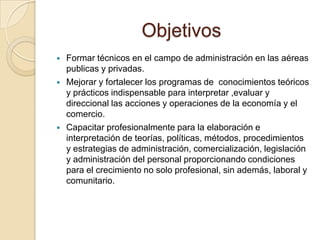 Este documento presenta la información sobre el Instituto Superior Particular Incorporado 4033. El instituto tiene como objetivos formar técnicos en administración para el sector público y privado, mejorar los programas de conocimientos teóricos y prácticos, y capacitar profesionalmente en temas de administración, comercialización, legislación y administración de personal. El plan de estudio incluye asignaturas de contabilidad, derecho, informática, idiomas, economía y matemática financiera durante tres años. Los graduados pueden trabajar en organismos of