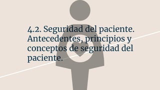 El documento presenta información sobre la calidad del cuidado y seguridad materna. Discute los antecedentes, principios y conceptos de seguridad del paciente, así como las bases éticas y legales del cuidado obstétrico. También describe el modelo de atención de enfermería obstétrica y las prácticas seguras de enfermería en este campo, concluyendo con una discusión sobre las tendencias actuales en la práctica independiente de la enfermería obstétrica.