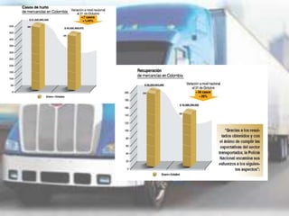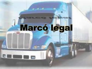 El documento habla sobre el marco legal que regula el transporte de carga por carretera en Colombia. Incluye aspectos como los delitos asociados a la piratería terrestre, los seguros de transporte, y los procedimientos para reclamar en caso de siniestros. También cubre temas de control operativo, selección de conductores y vehículos, y el compromiso de Colombia con la Convención de Viena contra el narcotráfico.