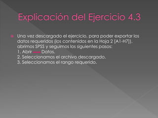 Para exportar datos de una hoja de cálculo a SPSS, se debe abrir SPSS, seleccionar el archivo de hoja de cálculo descargado, y seleccionar el rango de celdas requerido.