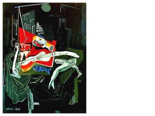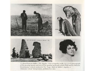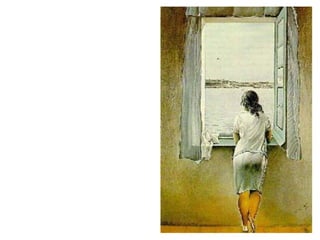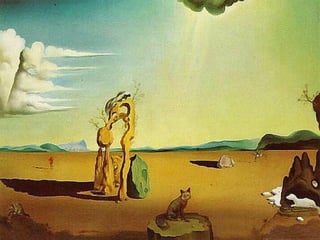 Este documento proporciona una cronología detallada de la vida y obra del pintor surrealista Salvador Dalí desde su nacimiento en 1904 hasta 1929. Resalta sus primeras influencias artísticas como el impresionismo, su educación en la Escuela de Bellas Artes de Madrid y su contacto creciente con el movimiento surrealista, incluyendo su colaboración en la película Un perro andaluz. Describe varias de sus primeras obras que muestran la evolución de su estilo desde el academicismo hasta el surrealismo.