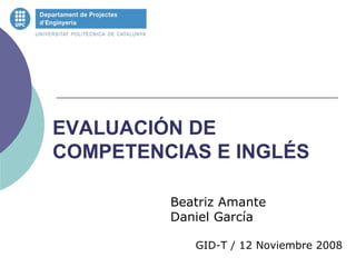 Este documento resume las experiencias y metodologías utilizadas para evaluar las competencias en inglés de los estudiantes de ingeniería en la Universidad Politécnica de Cataluña. Describe tres actividades clave: 1) presentaciones breves en inglés sobre proyectos de grupo, 2) sesiones de práctica de presentaciones orales en inglés, y 3) desarrollo parcial o completo de proyectos en inglés. Los resultados muestran mejoras en las habilidades de comunicación oral y escrita en inglés. Las conclusiones en