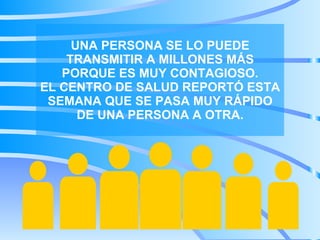 El documento habla sobre un nuevo virus altamente contagioso que se transmite rápidamente de persona a persona y que causa sonrisas. El virus se llama "Sonrisa" y la alerta es que ya te has contagiado por una persona que te quiere. Luego, el documento desea cosas positivas como sonrisas, risas, abrazos, amigos, belleza, confianza, fe, valentía, paciencia, amor y un día maravilloso.