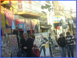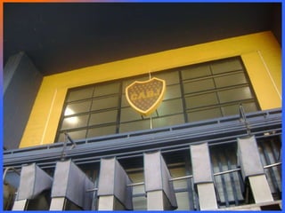 El documento presenta un fotorreportaje del barrio de La Boca en Buenos Aires, Argentina. Describe algunas características del barrio como los conventillos pintados de colores, la cancha y tribunas de Boca Juniors, negocios locales, y el Río de la Plata con su trasbordador y barcos. También menciona lugares emblemáticos como el Museo Quinquela Martín y el Teatro La Ribera.