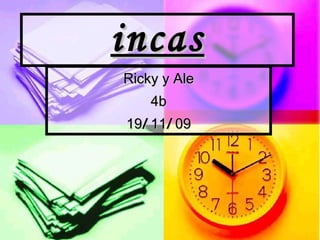 El documento resume información sobre los incas. Ubicación y capital de los incas era Machu Picchu, Quito y Cuzco, con capital en Cuzco. Yupanqui era un soberano inca que asumió el nombre Pachacutec, que significa "el que transformó el mundo". Según la leyenda, los Pururaucas eran piedras transformadas en soldados por el Dios Sol. El conquistador español que desembarcó en la costa fue Francisco Pizarro. Grupos indígenas ayudaron a los españoles debido a su descontento