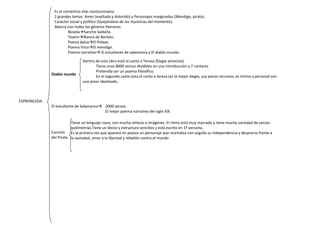 El documento resume la obra y estilo del poeta español José de Espronceda. Describe su poema El estudiante de Salamanca, que consta de 2000 versos y es considerado el mejor poema narrativo del siglo XIX en España. También analiza su poema "Canción del Pirata", señalando que presenta por primera vez en la poesía española a un personaje que reivindica con orgullo su independencia y desprecio hacia la sociedad.