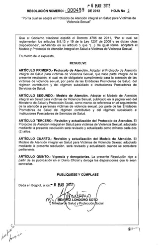 Este documento presenta el Protocolo de Atención Integral en Salud para Víctimas de Violencia Sexual en Colombia. El protocolo describe 15 pasos para guiar la atención de víctimas de violencia sexual por el personal de salud, incluyendo la recepción inmediata, evaluación clínica, pruebas diagnósticas, tratamiento, derivación a otros servicios y seguimiento del caso. El objetivo es establecer lineamientos uniformes para brindar una respuesta integral, oportuna y de calidad a las víctimas, acorde con la legislación col