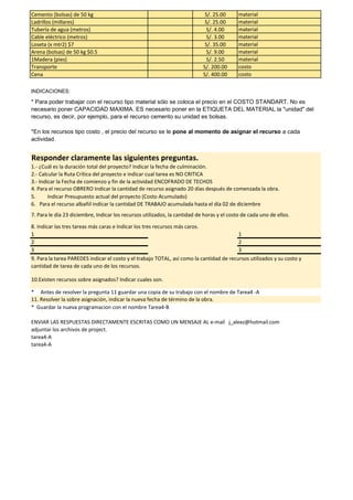 El documento describe los pasos para programar la construcción de una vivienda usando Microsoft Project. Incluye las fechas de inicio y finalización del proyecto, el calendario de trabajo, las tareas requeridas con su duración, los recursos disponibles, y las condiciones de programación de tareas y recursos asignados.