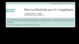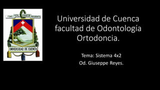 Este documento describe el sistema ortodóncico fijo 4x2, el cual coloca 4 brackets anteriores y 2 tubos posteriores. Explica que este sistema es una alternativa a la ortopedia y se usa para tratar problemas comunes en niños como mordidas cruzadas anteriores y posteriores e incisivos impactados. También discute las ventajas de los aparatos fijos sobre los removibles y factores a considerar para corregir diferentes tipos de mordidas cruzadas e incisivos impactados.