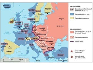 La Guerra Fría entre 1955-1962 se caracterizó por la reafirmación de los bloques, el intento de coexistencia pacífica y la crisis de los misiles en Cuba en 1962. Hubo conflictos como la rebelión en Hungría en 1956 y la crisis de Suez, mientras que Jruschov propuso la "coexistencia pacífica". No obstante, la construcción del Muro de Berlín en 1961 y la instalación de misiles soviéticos en Cuba llevaron a una grave crisis entre Kennedy y Jruschov.