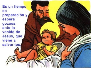 El Adviento es el periodo de 4 semanas antes de Navidad en el que la Iglesia se prepara para celebrar el nacimiento de Jesús. Es un tiempo de conversión, esperanza y preparación mediante la reflexión de las profecías y la encendiendo de velas en la corona de Adviento, acompañando a María y José en la espera del nacimiento del Mesías prometido.