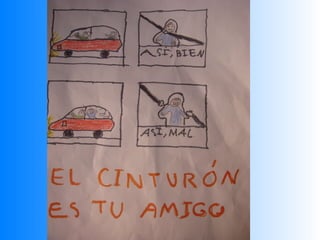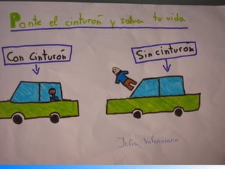 Los alumnos de 5o B del Colegio Antonio Machado de Burgos proponen eslóganes para promover el uso del cinturón de seguridad en los coches. Los eslóganes enfatizan que ponerse el cinturón puede prevenir accidentes y que solo toma un clic asegurar la propia seguridad.
