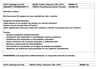 Este documento contiene los resúmenes de tres clases sobre informática y tecnología impartidas a estudiantes de quinto grado. La primera clase cubrió elementos básicos de PowerPoint como barras de herramientas e inserción de texto e imágenes. La segunda clase se enfocó en mejorar diapositivas aplicando más herramientas. La tercera clase discutió artefactos tecnológicos que satisfacen necesidades socioeconómicas como computadoras, vehículos y celulares.