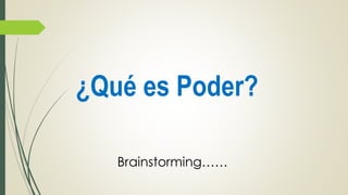 El documento describe diferentes tipos de poder, incluyendo el poder coercitivo, de recompensa, legítimo, basado en la experiencia e información, y de referencia. También discute el lenguaje corporal y cómo los líderes pueden demostrar respeto a través de su postura, gestos y movimientos.